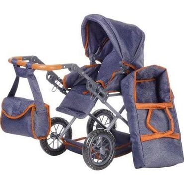 - Elegantna kolica za lutke u tamnoplavoj boji sa dekorativnim braon detaljima