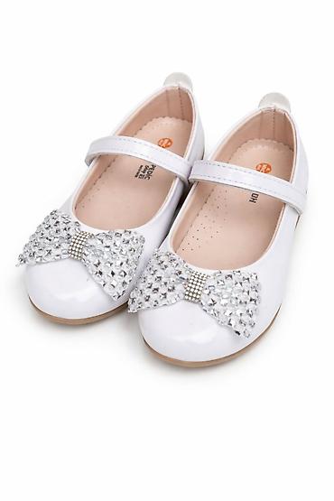 - Elegantne bele baletanke sa sjajnim mašnama ukrašenim kristalima i sitnim nitnama za blistav efekat.
