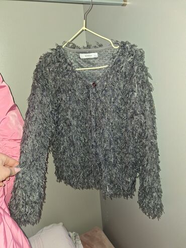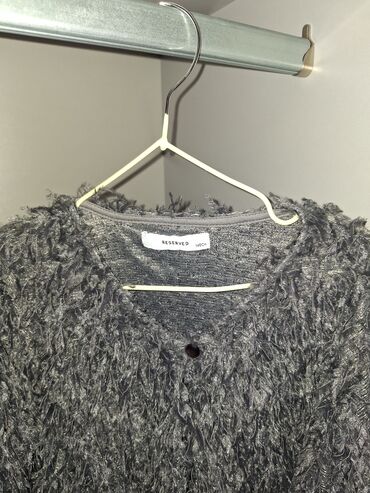 - Sivi „shaggy/fuzzy” kardigan sa teksturom