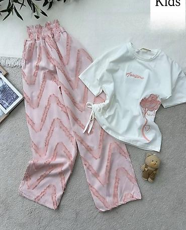 - Donji delovi: široke, komotne pantalone ravnih nogavica sa elastičnim pojasom. Uzorci uključuju reljefne cvetne motive i talasaste/chevron pruge. Tkanine su nežne na koži i prijatne za celodnevno nošenje.