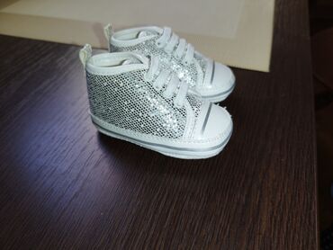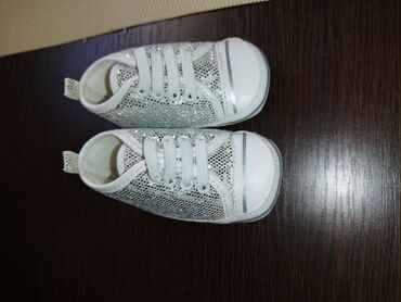 - Dizajn: dekorativne srebrne linije na vrhu, jezičak pozadi za lakše obuvanje, klasične bele pertle