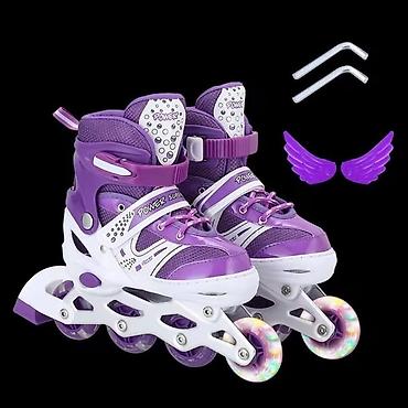 - Dizajn sa 4 točka u nizu (inline), prednji točkići sa LED osvetljenjem koje svetli pri kretanju – bez baterija.