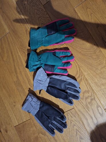 - Par 1: Zelene rukavice sa roze ivicama i prstima. Topao, postavljen model sa elastičnim rubom oko zgloba i čičak trakom za bolje prijanjanje. Dizajnirane za sneg i hladno vreme.