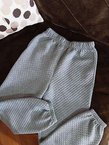 - Donji deo trenerke SHEIN, svetlosive boje sa prošivenom/kvadratastom teksturom. Veličina S (EU 36). Elastičan pojas i ranfle na nogavicama, bočni džepovi. Materijal pogodan za mašinsko pranje na hladno (navedeno na etiketi).