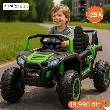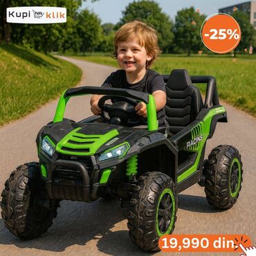 Dečiji električni kvad – zeleni/ crni - Tip: baterijsko vozilo za decu, kvad (4 točka) - Pogon: električni, napred/nazad - Upravljanje: volan sa ručicama, široke gume za stabilnost - Osvetljenje: ...