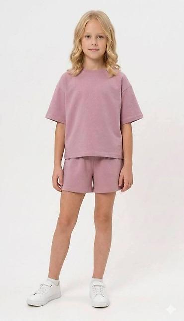 - Dvodijelni komplet za devojčice: široka majica kratkih rukava i šorts srednje dužine.