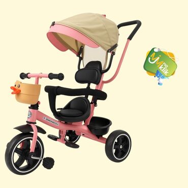 Dečiji tricikl sa ručkom za upravljanje i tendom