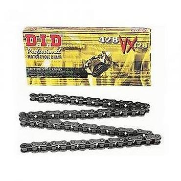 D.I.D Professional lanac za motocikle, model 428 VX. Ovaj lanac je dizajniran za prenos snage na motociklima. Sa svojim robusnim metalnim karikama, obezbeđuje pouzdanu i efikasnu vezu za pogonski sistem motocikla. Pogodan je za zamenu ili nadogradnju pogonskog lanca na motociklima koji koriste lanac tipa 428 VX.
