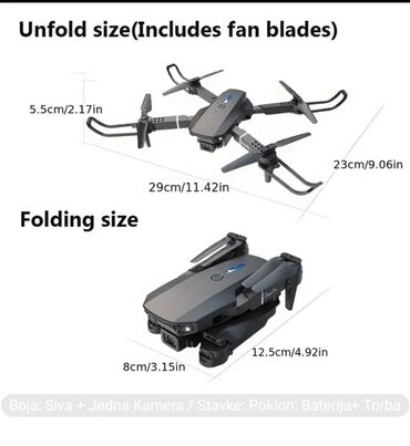 - Ugrađena kamera na gimblu za snimanje fotografija i videa iz vazduha.