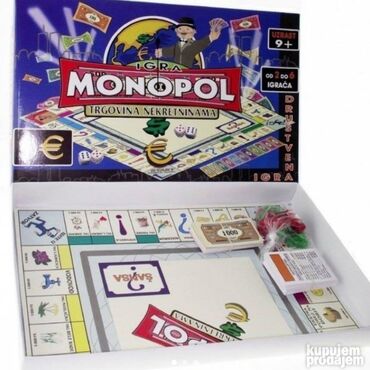 Klasična porodična igra trgovanja nekretninama. Igrači kupuju, prodaju i izdaju u zakup ulice i objekte, grade kuće i hotele, naplaćuju rente i upravljaju novcem uz karte iznenađenja. Cilj je strateški dovesti protivnike do bankrota kroz pametna ulaganja i pregovore.