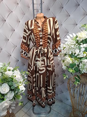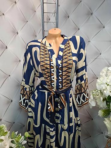 Dugačaka haljina sa etno/geo printom - Model: košulja-haljina do