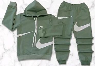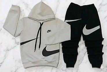 - Veliki kontrastni “swoosh” print na duksu i na nogavicama, mali logo na grudima
