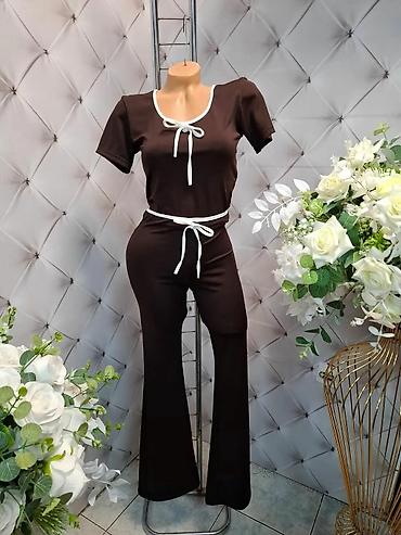 - Boje prikazane: crna; tamno smeđa (top i pantalone u istoj boji, sa belim detaljima)