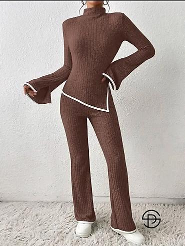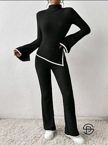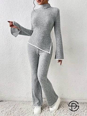 Dvodelni ženski komplet od rebrastog pletiva - Dizajn: uska