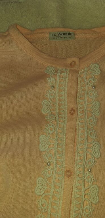 Dečji pleteni kardigan na rajsferšlus, brend Todor. - Boja: nežno roze - Veličina: 116 (oko 6 godina) - Materijal: 50% pamuk, 50% akril (prema etiketi: Art. 65093, vel. 6) - Dizajn: raglan rukavi, ...