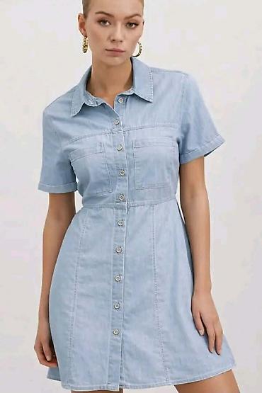 Džins košulja-haljina, mini dužine. - Materijal: denim (pamuk)