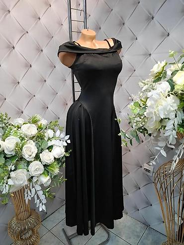 Crna haljina sa dubokim dekolteom. Duzina i sirina na slikama