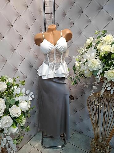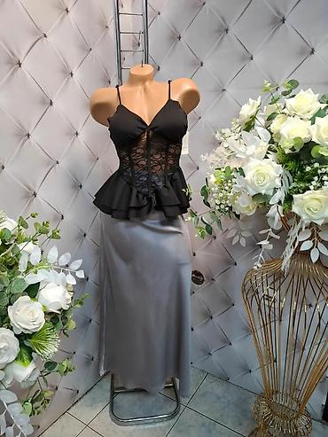Napomena: Fotografije prikazuju dve boje gornjeg dela (crna i bela) u kombinaciji sa istom sivom suknjom. Kombinujte prema željenom efektu – kontrastno i upečatljivo u crnoj varijanti, ili svežije i romantično u beloj.