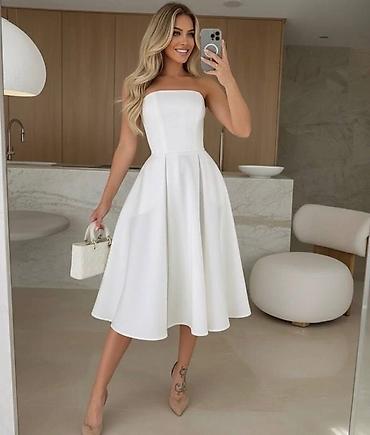 Elegantna midi haljina bez bretela - Kroj: struk naglašen, gornji deo