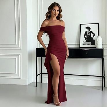 Elegantna večernja haljina – model sa spuštenim ramenima