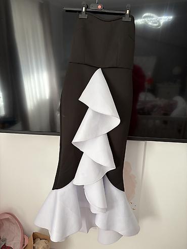 2) Crno-bela midi/duga suknja sa volanima