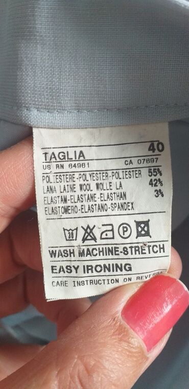 Svečane pantalone, ravnih padajućih nogavica, golubije pllave boje, postavljene, na zakopčavanje na zip na boku, materijal poliester.Napred ustručene, a pozadi guma, stoga lepo padaju i ne ocrtava ...