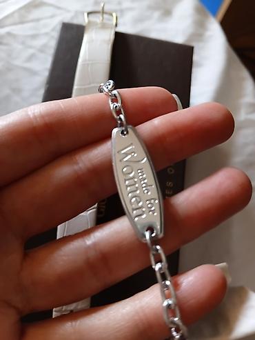 - Narukvica: lančani model u srebrnoj boji, pločica sa ugraviranim natpisom “made for Women”, klasično kopčanje. Diskretan sjaj, dopunjuje izgled sata.