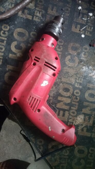 UpotrebljenоElektrična bušilica sa kablom, crvena kućišta.