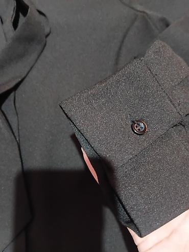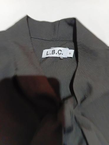 - Bluza: brend L.B.C., veličina M. Klasična crna bluza sa dugim rukavima i dekorativnom mašnom/vezom pri vratu. Jednostavna, profinjena linija koja lepo prati figuru; manžetne sa dugmetom.