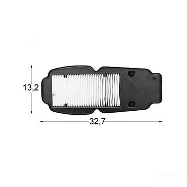 - Primena: za skutere/mopede koji koriste široki pravougaoni uložak sa integrisanim ramom ovog oblika (često kod Piaggio, Aprilia i srodnih modela – uporediti oblik i mere sa postojećim filtrom)