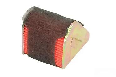 Filter za vazduh vozila, dizajniran za efikasno prečišćavanje vazduha pre ulaska u motor. Sadrži unutrašnji sloj od plisiranog papira crvenkasto-narandžaste boje i spoljašnji sloj od crne pene, osiguravajući dvostruku zaštitu od čestica. Metalni okvir žućkaste boje pruža strukturnu podršku i izdržljivost. Pogodan je za upotrebu u različitim vozilima, doprinoseći optimizaciji performansi motora i produžavanju njegovog veka trajanja.