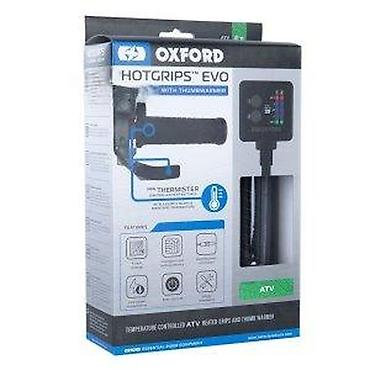 Grejači ručki Oxford HotGrips EVO sa grejačem za palac su dizajnirani za ATV vozila. Opremljeni su pametnim termistorom koji inteligentno detektuje i održava temperaturu. Set nudi pet podešavanja grejanja, režim štednje baterije, vodootporni prekidač, zaštitu od niske baterije, funkciju automatskog isključivanja i jednostavnu instalaciju. Predstavljaju pouzdano rešenje za udobnu vožnju po hladnom vremenu.