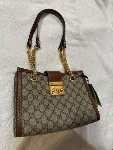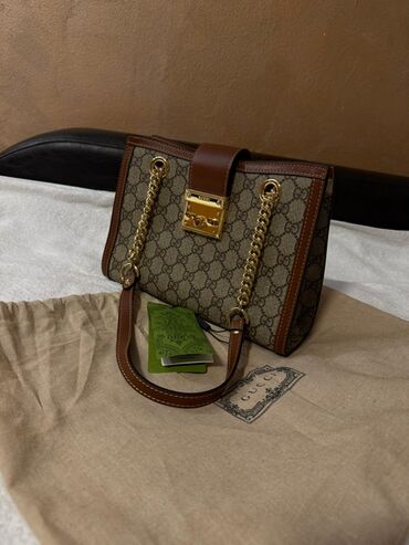 Gucci ženska torba – model sa lančanim ručkama i pločicom zaključavanja