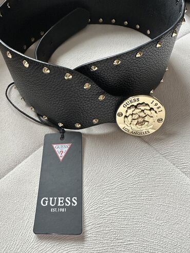 CrnaGuess kozni kais sa zlatnim nitnama sa etiketom NOVO Velicina S Iz Italije