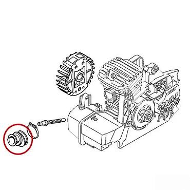 - Ugradnja: postavlja se između karburatora i cilindra (pozicija obeležena na šemi). Kompatibilno sa standardnim steznim obručem.