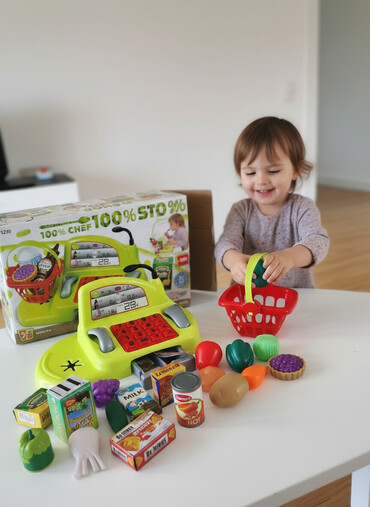O trošku kupcaIgracka za decu - DexyCo - decja kasa sa svim dodacima kao na slikama, tvrda, kvalitetna plastika..imam puno igracaka, puzli i knjiga na nalogu