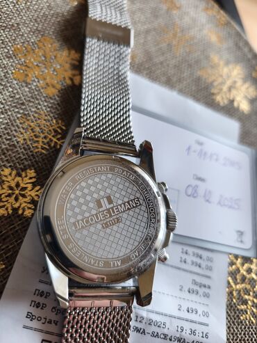 - Narukvica: čelična “mesh” (mrežasta), preklopna kopča sa logotipom Jacques Lemans