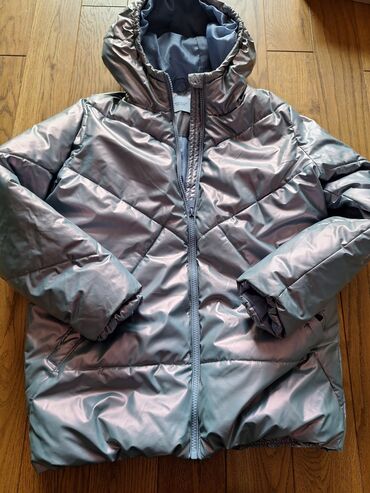 NOVA zimska jakna RESERVED, metalik svetloplava (sjajna). Model puffer sa horizontalnim prošivima i velikom kapuljačom. Detalji: - Veličina: 164 cm (etiketa na slici) - Duži kroj za bolju zaštitu...