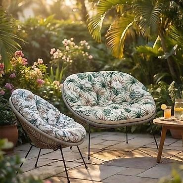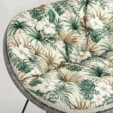 Jastuk za ljuljašku/viseću korpu – okrugli, sa naslonom za glavu - Tip: debeli, tapacirani jastuk za gnijezdo/ljuljašku jajastog oblika - Oblik/dimenzije: širok okrugli sedeći deo sa dubokim boč...