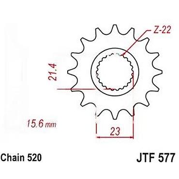 Napomena: proveriti broj zuba, profil osovine i oznaku JTF577 prema specifikaciji vašeg motocikla pre ugradnje. Instalaciju izvršiti moment ključem uz upotrebu odgovarajuće sigurnosne pločice ili osigurača.