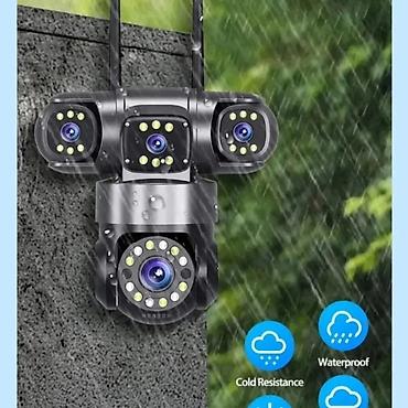 Glavna kamera rotira se putem telefona, gornja centralna je fiksna, a bočne se ručno podešavaju prilikom montaže — idealno za nadzor dvorišta, ulaza i parkirališta.