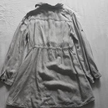 Dečija haljina dugih rukava sa maskirnim printom (sivo-zelene nijanse). Model je ravnog kroja, mekane pamučne trikotaže, sa okruglim izrezom. Ukrasni volan ide preko grudi i ramena, a na prednjoj s...