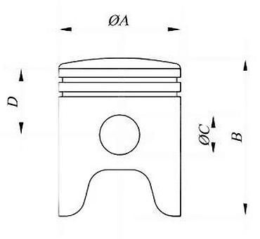 - Odgovara cilindrima za dvotaktne agregate testera; proveriti tačne mere pre ugradnje (prečnik A klipa, visinu B, prečnik C bolcna, ukupnu visinu D – prema tehničkom crtežu na fotografiji).