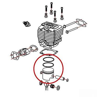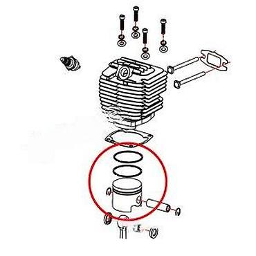 - Zamenska grupa klipa za sklop cilindra dvotaktnih testera (videti šemu na slici za poziciju u sklopu). Prikladno za servis i remont agregata sa navedenim dimenzijama klipa.