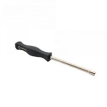 Ključ za navrtke sa splajnovanim prihvatom, dizajniran za efikasno zatezanje i otpuštanje navrtki i vijaka. Poseduje ergonomsku crnu ručku koja obezbeđuje udoban hvat i sigurno rukovanje. Metalni vrat alata je izdržljiv i pruža preciznost pri radu. Idealan je za različite mehaničarske poslove i popravke gde je potreban pouzdan alat za navrtke.