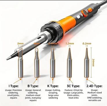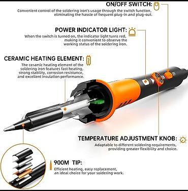 Pogodno za elektroniku, rad na PCB pločama, popravke sitnih spojeva, hobi projekte i precizne intervencije. Lako održavanje: vrh se menja odvrtanjem navrtke, čišćenje na priloženom sunđeru. Ergonomično kućište i dugačak kabl za komforan rad.