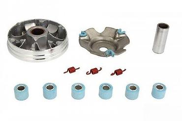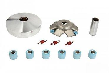 Kompletan set varijatora za skutere, dizajniran za optimizaciju performansi prenosa. Set uključuje varijator remenicu, pogonsku stranu, valjke i opruge, pružajući sve neophodne komponente za zamenu ili nadogradnju. Metalni delovi su izrađeni od izdržljivog materijala, dok su valjci i opruge precizno dimenzionisani za efikasan rad. Idealan je za održavanje ili poboljšanje odziva i brzine vašeg skutera.
