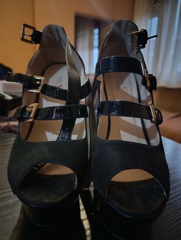 O trošku kupcaLakovana platforma sandala,u odlicnom stanju,br 38,gaziste 24 cm.
