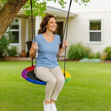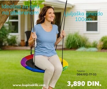 Viseća ljuljaška/gnijezdo sa stalkom - Tip: viseća stolica sa čeličnim stalkom u obliku luka - Konstrukcija: čvrst metalni ram, sedište od pletenog materijala (ratan/veštački ratan stil) sa lance...
