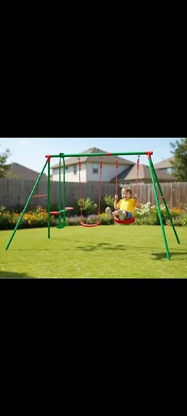 Višenamenski set za dečje igralište – metalna konstrukcija sa više zabavnih stanica za igru na otvorenom. Ključne karakteristike: - Stabilan čelični ram sa A-nogama i poprečnom gredom za sigurnu m...